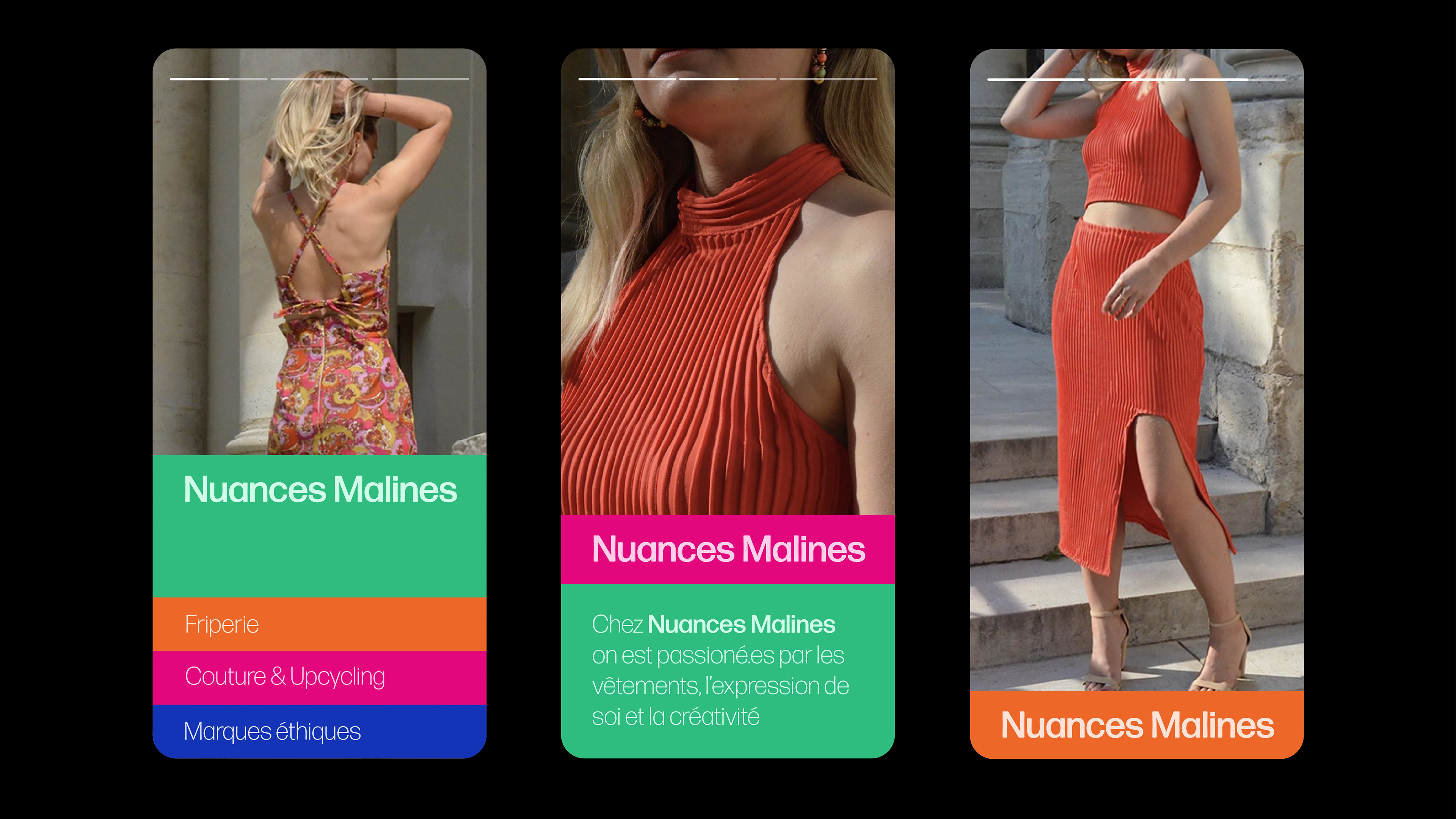 The objective was to move away from the “vintage” aesthetic often associated with second-hand shops in Paris. The founder, Magali, wanted a modern, dynamic, and colorful identity, along with a simple and highly functional typographic logo, complemented by a monogram used as a signature element.